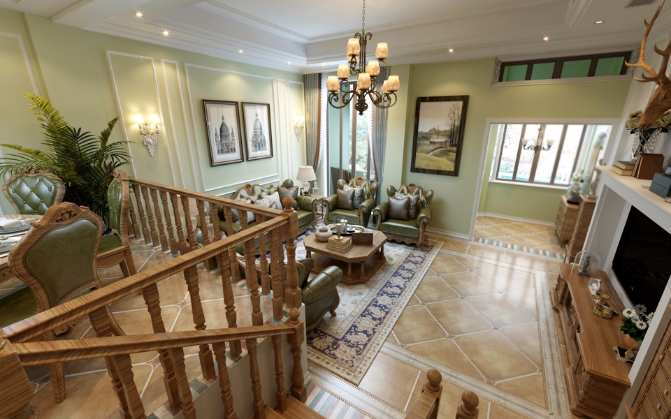 【華新山水居】美式躍層客餐廳效果圖